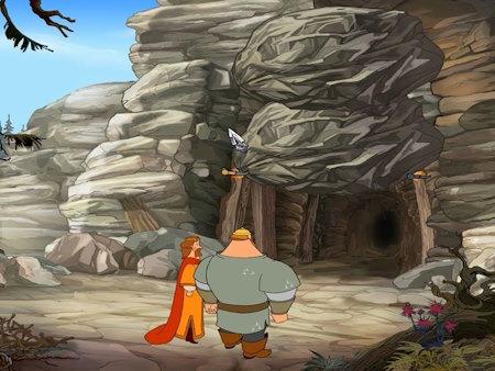 - Вставьте меч и саблю в отверстия у пещеры